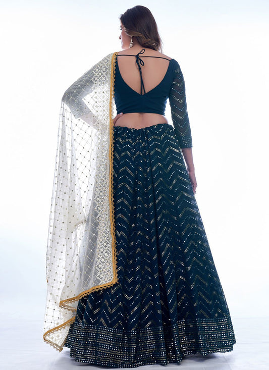 Lehenga Choli Georgette Green Sequins Lehenga