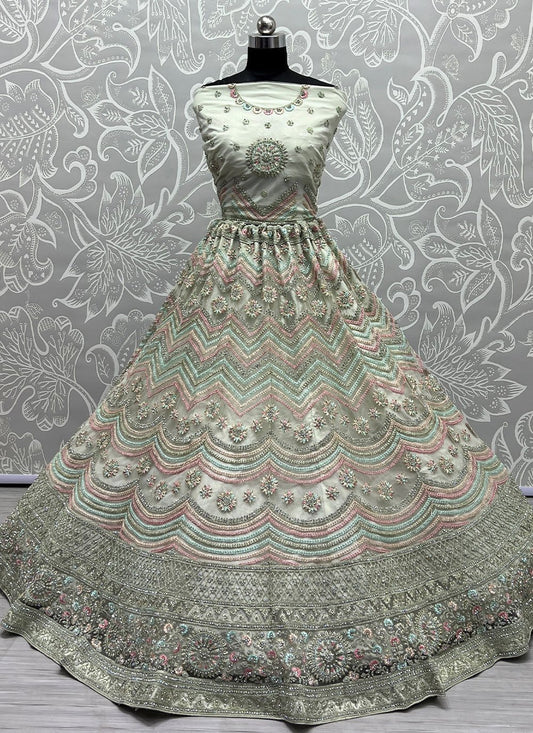 Lehenga Choli Net Green Embroidered Lehenga