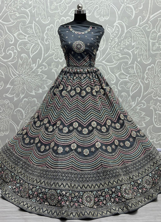 Lehenga Choli Net Grey Embroidered Lehenga