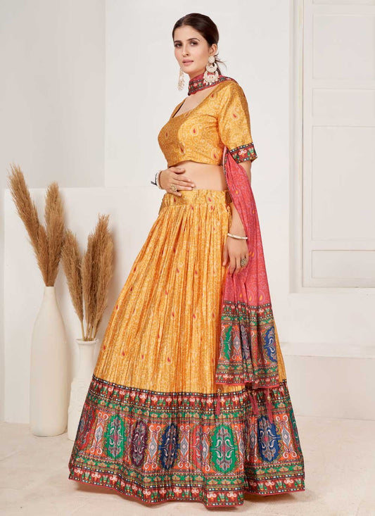 Lehenga Choli Satin Orange Digital Print