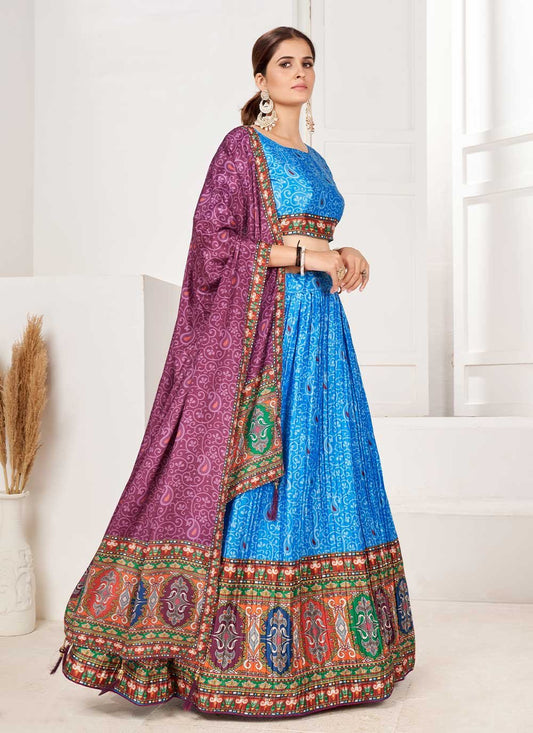 Lehenga Choli Silk Blue Embroidered Lehenga