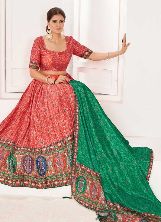 Lehenga Choli Satin Red Digital Print