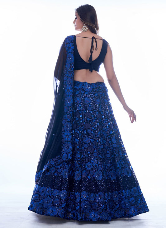 Lehenga Choli Georgette Blue Sequins Lehenga