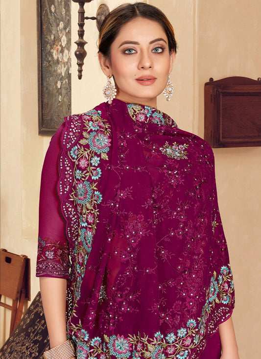 Trendy Saree Cotton Fuchsia Embroidered Saree
