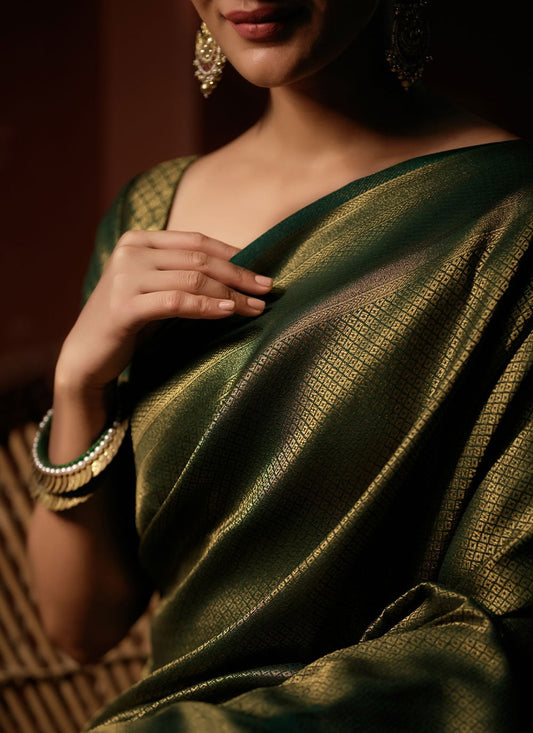 Contemporary Kanjivaram Silk Green Weaving Saree