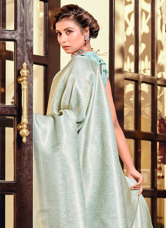 Classic Kanjivaram Silk Aqua Blue Weaving