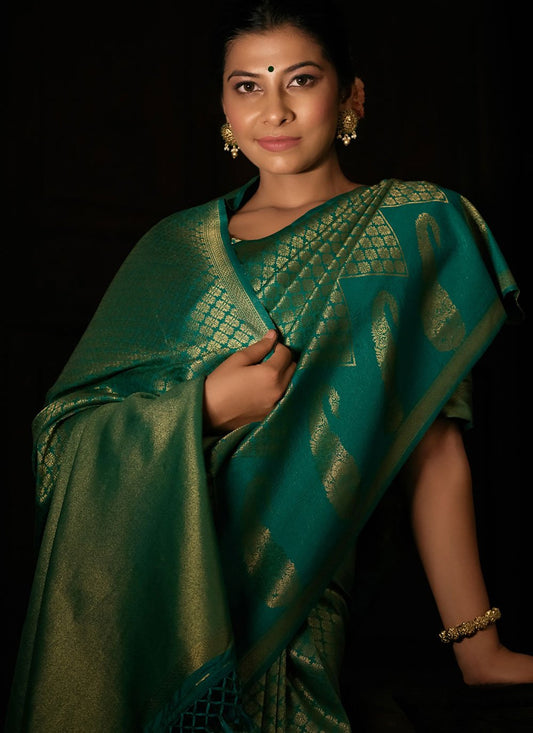 Contemporary Kanjivaram Silk Sea Green Weaving
