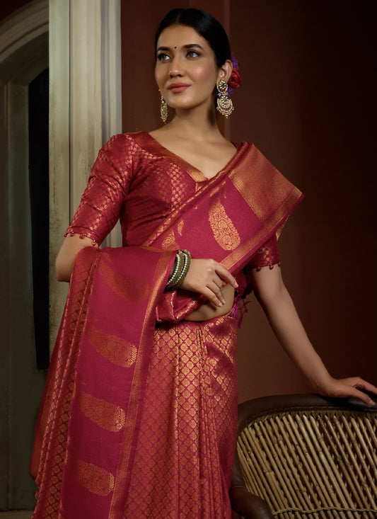 Trendy Saree Kanjivaram Silk Brown Weaving