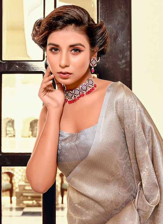 Contemporary Kanjivaram Silk Grey Woven Saree