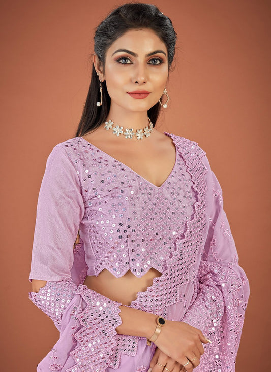Classic Georgette Lavender Lucknowi Work Saree