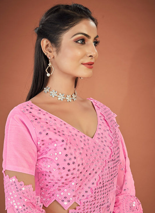 Contemporary Georgette Pink Lucknowi Work Saree