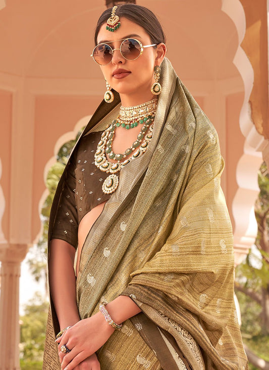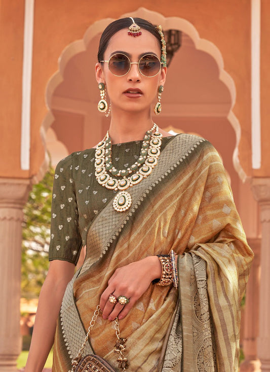 Designer Silk Brown Digital Print Saree
