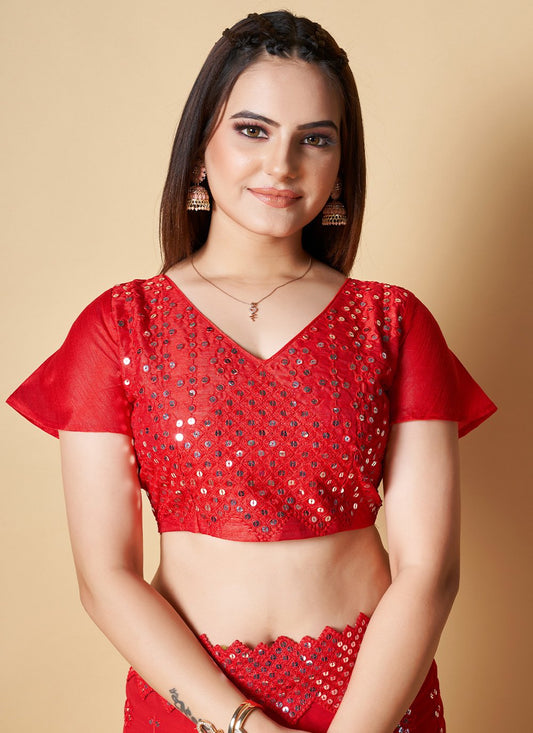 Traditional Saree Organza Red Embroidered Saree