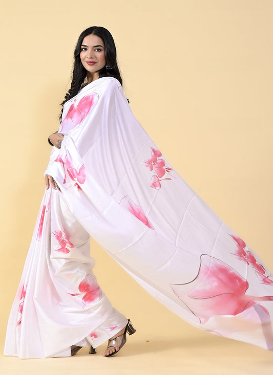 Casual Satin Silk Pink White Digital