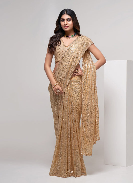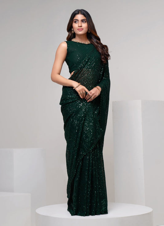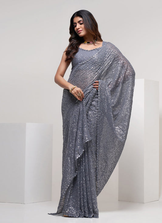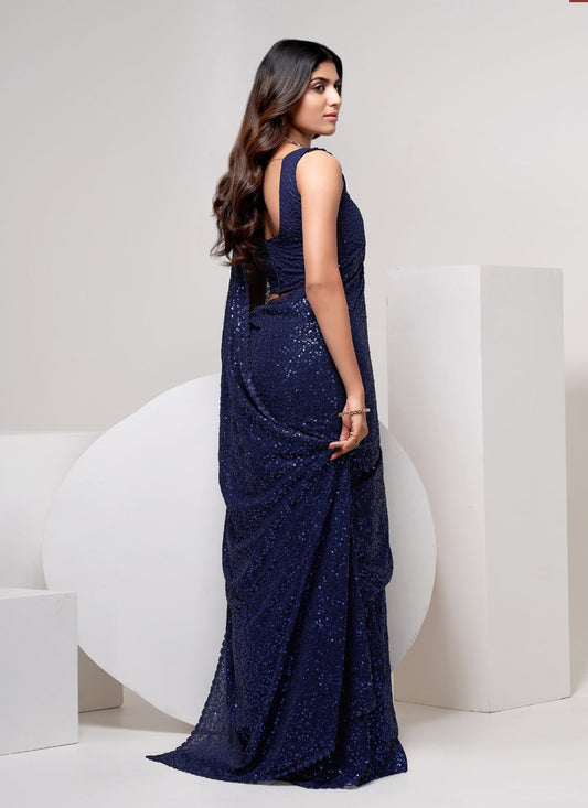 Contemporary Lycra Net Turquoise Embroidered Saree