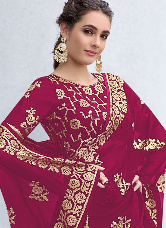 Traditional Saree Shimmer Georgette Fuchsia Sequins