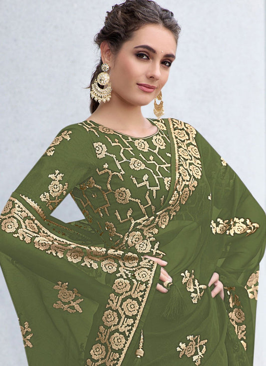 Classic Shimmer Georgette Green Sequins Saree