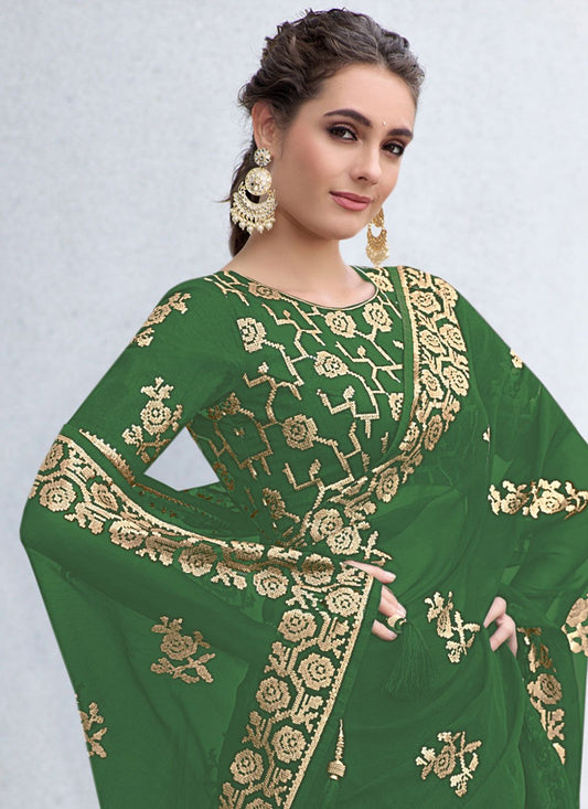 Contemporary Art Silk Green Embroidered Saree