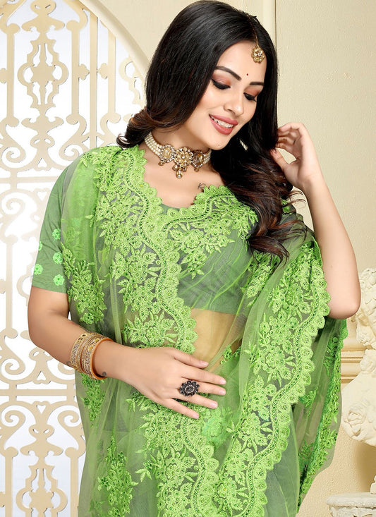 Classic Net Green Embroidered Saree