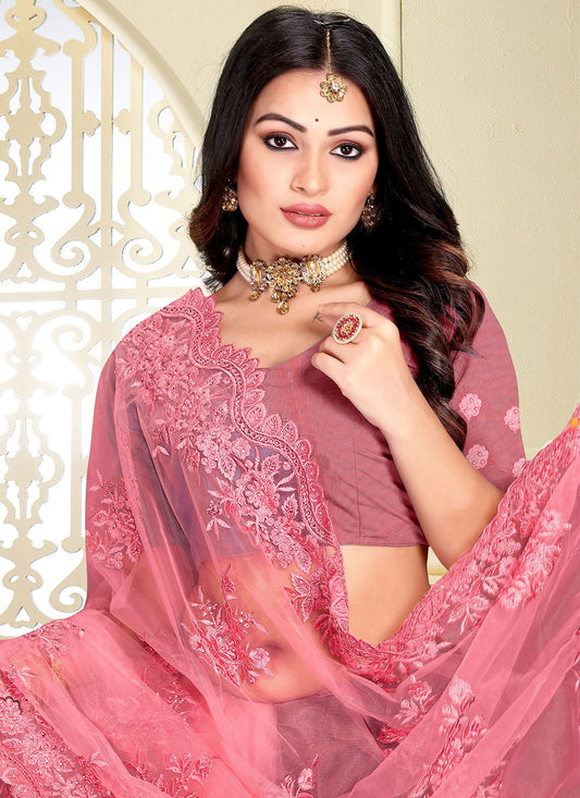 Contemporary Net Pink Embroidered Saree