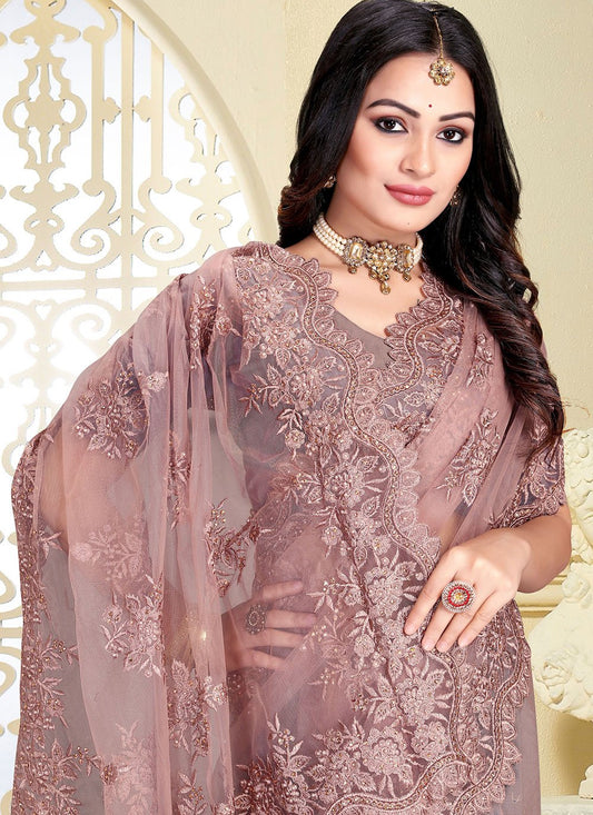 Classic Net Mauve Embroidered Saree