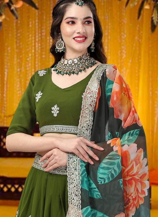 Lehenga Choli Georgette Green Embroidered Lehenga