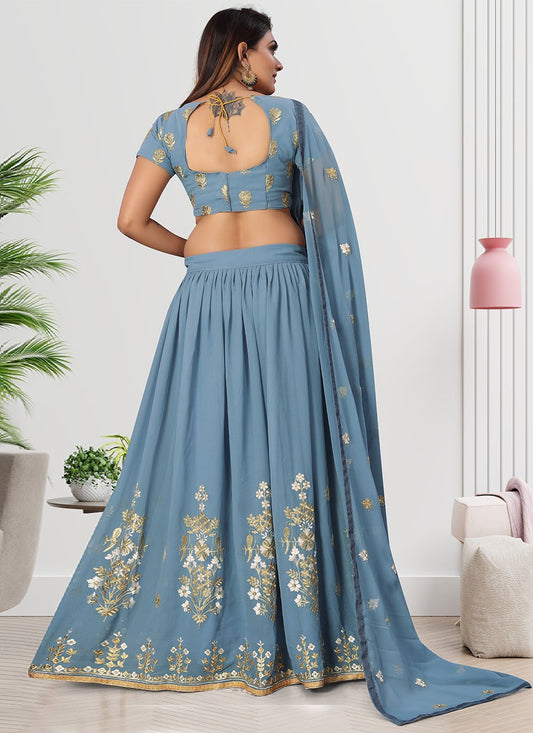 Lehenga Choli Tafeta Silk Blue Embroidered