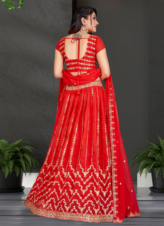 Lehenga Choli Georgette Red Embroidered Lehenga