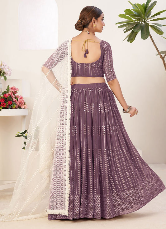 Lehenga Choli Georgette Lavender Embroidered Lehenga