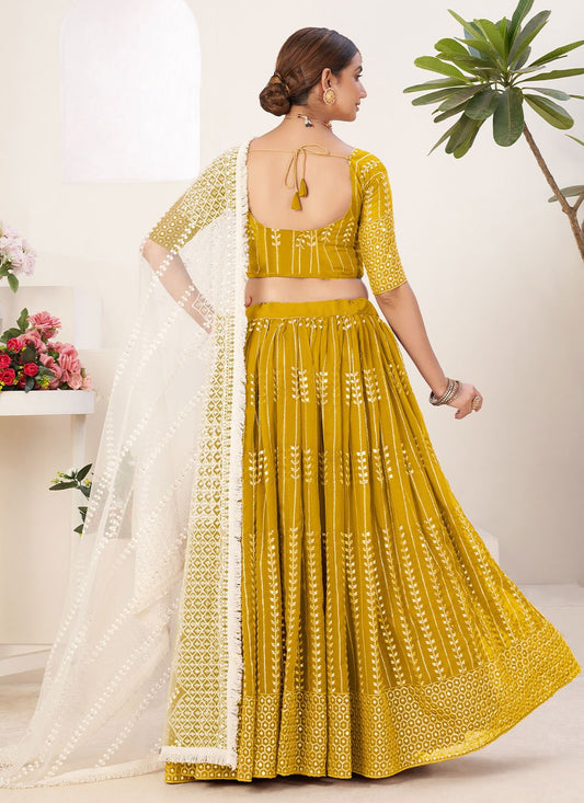 Lehenga Choli Georgette Mustard Embroidered Lehenga