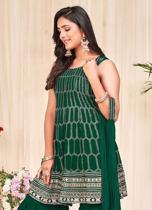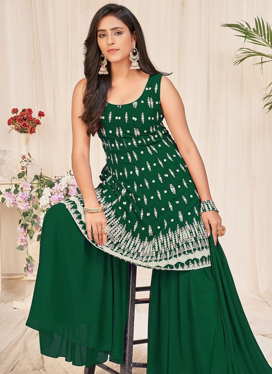 Sharara Set Georgette Green Embroidered Salwar