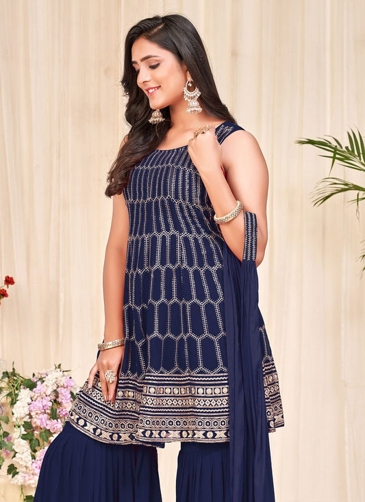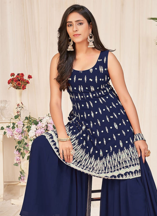 Salwar Suit Georgette Blue Embroidered Salwar