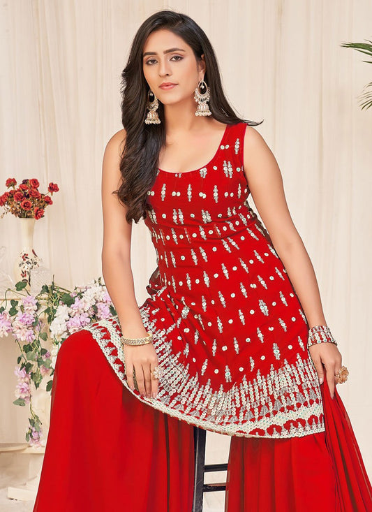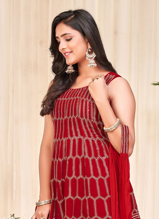 Salwar Suit Georgette Red Embroidered Salwar