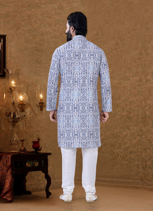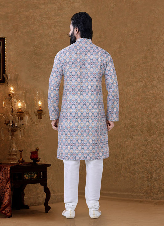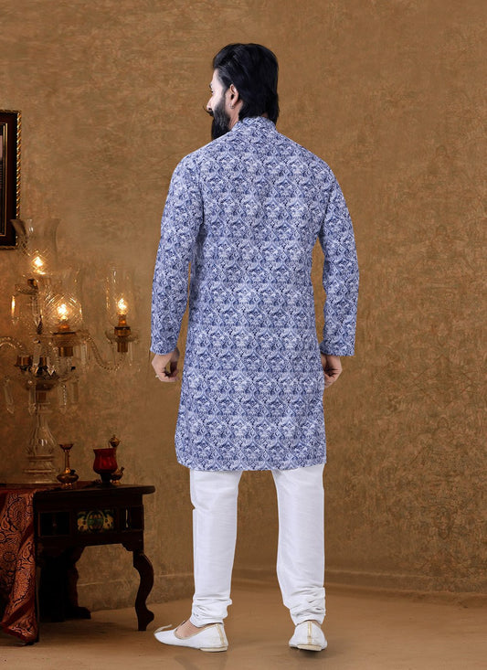 Kurta Pyjama Cotton Blue Digital Print