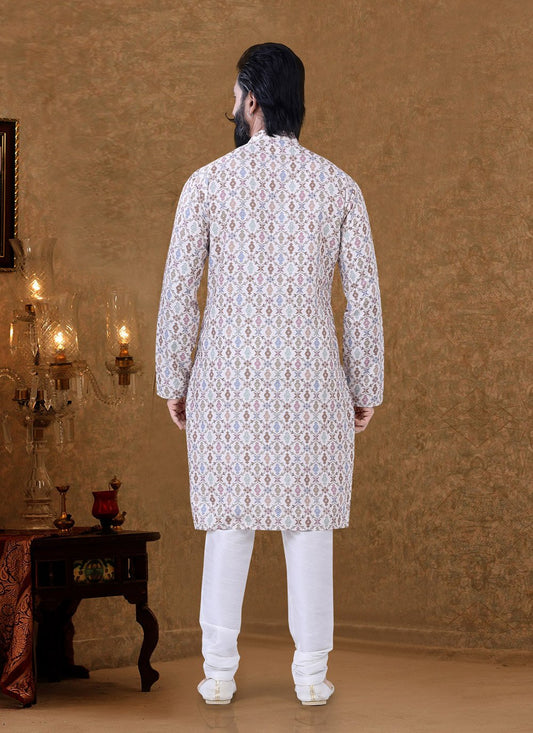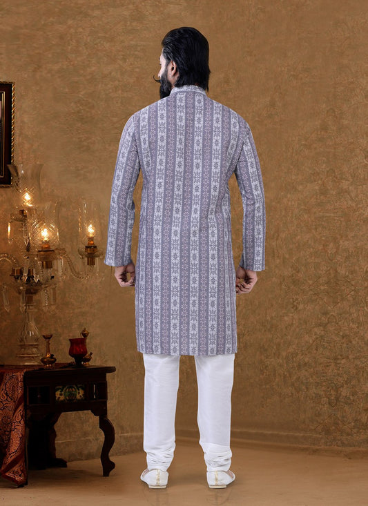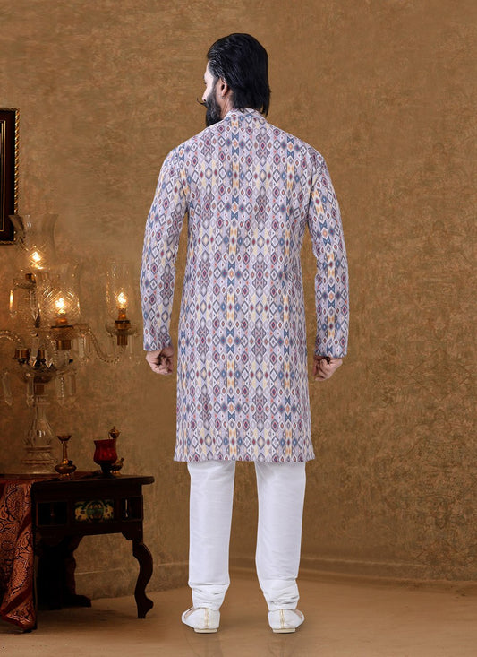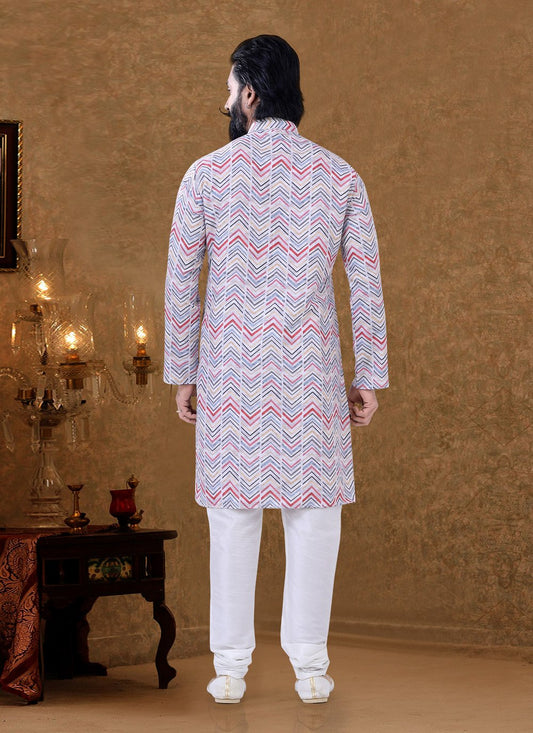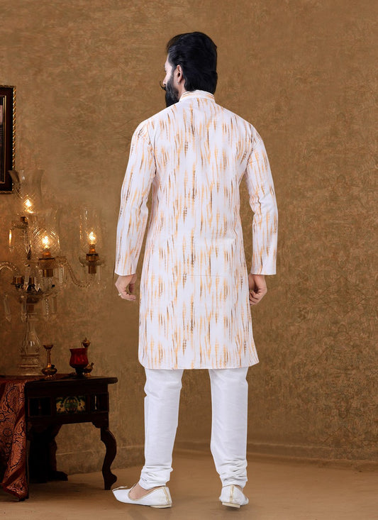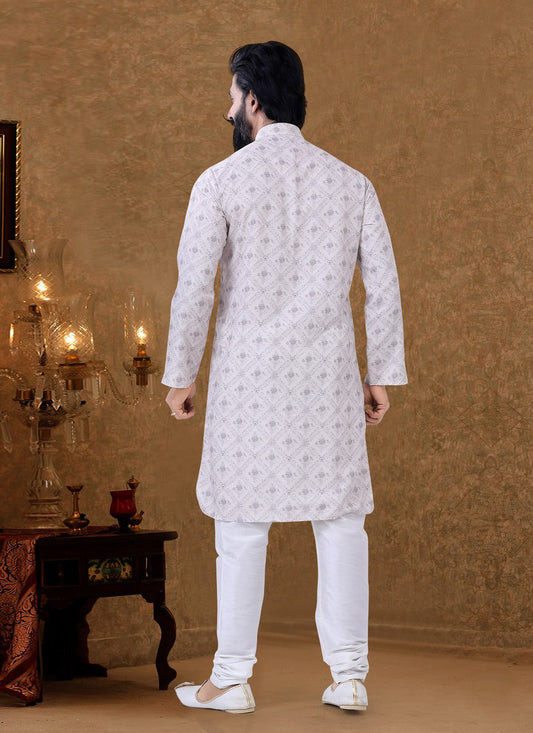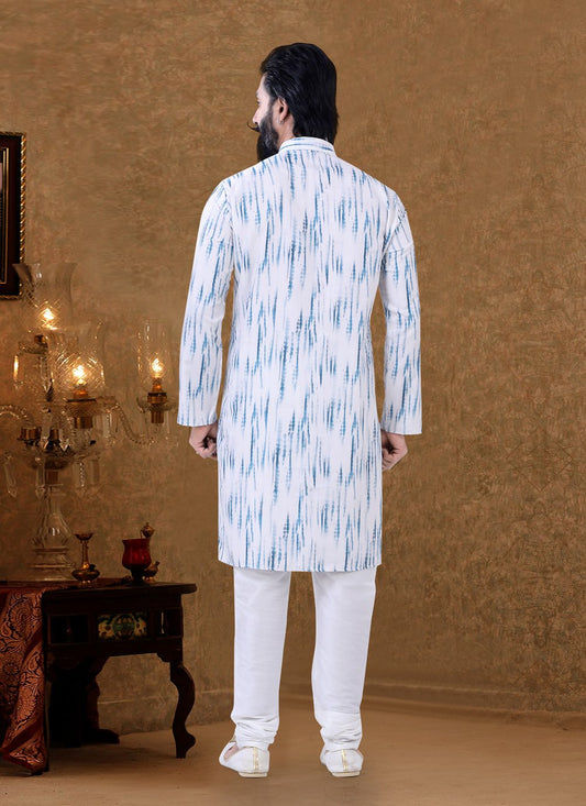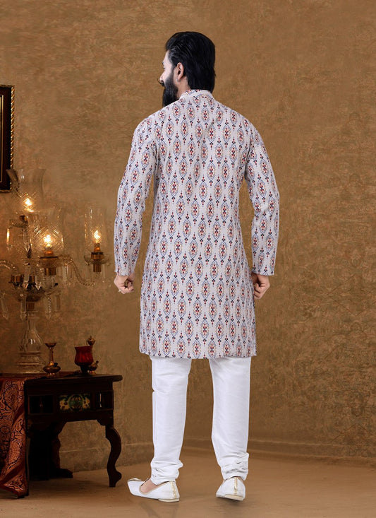 Kurta Pyjama Cotton Off White Digital