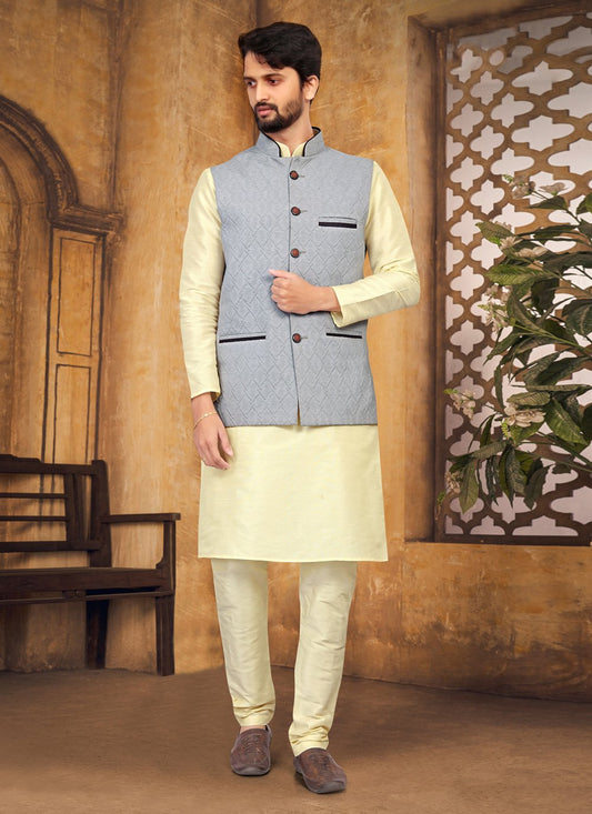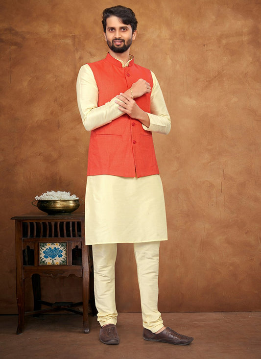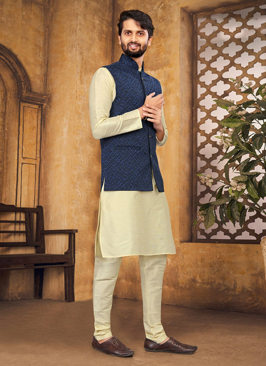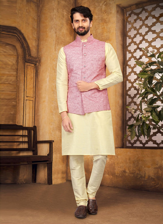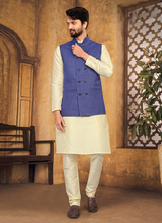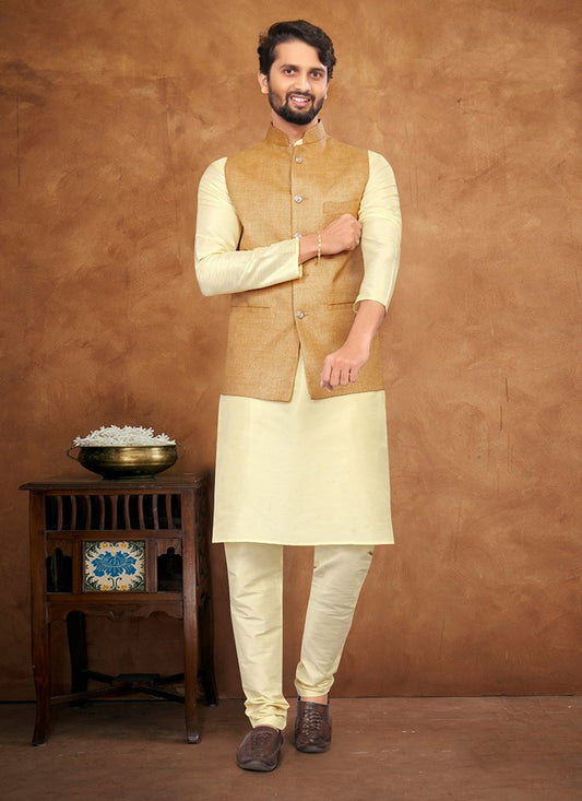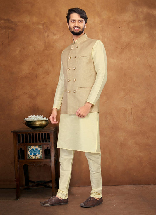 Kurta Payjama With Jacket Silk Cream