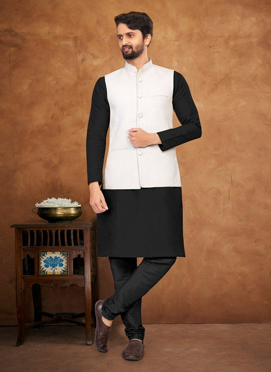 Kurta Payjama With Jacket Silk Black