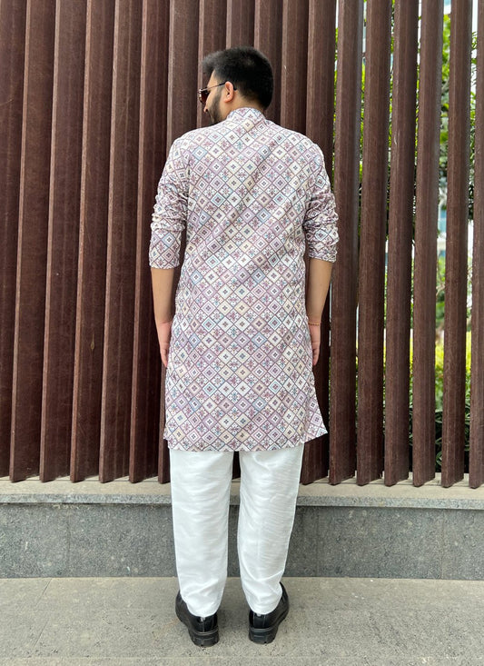 Kurta Pyjama Soft Cotton Purple Embroidered