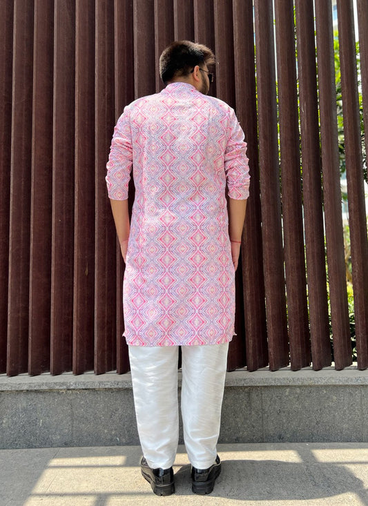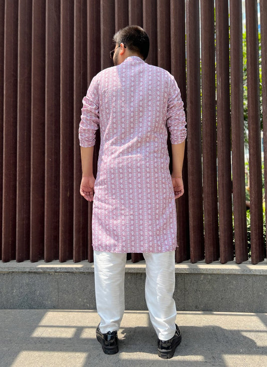 Kurta Pyjama Soft Cotton Pink Embroidered