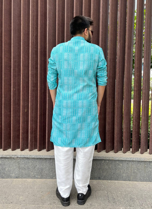 Kurta Banglori Silk Aqua Blue Embroidered