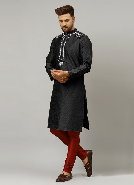Kurta Pyjama Art Dupion Silk Black