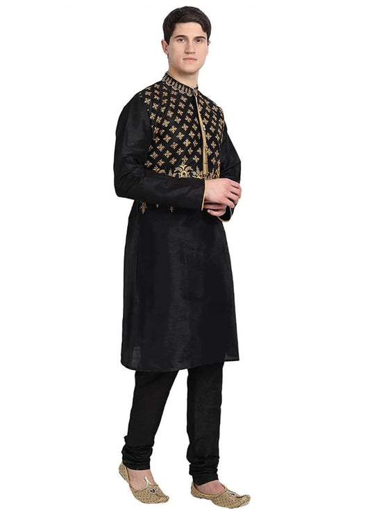 Indo Western Jacquard Silk Black Gold