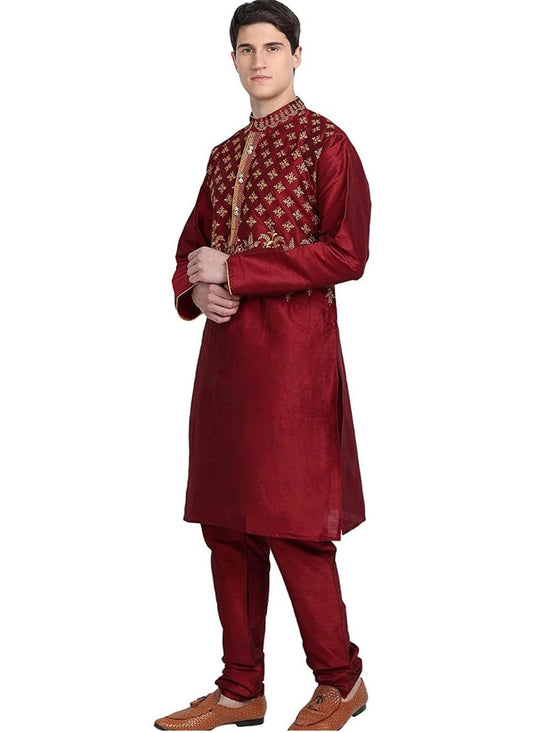Kurta Pyjama Art Dupion Silk Maroon