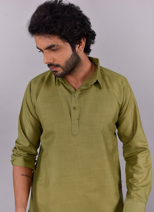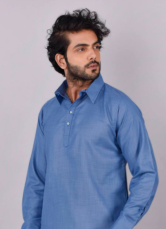 Kurta Pyjama Cotton Turquoise Plain Mens