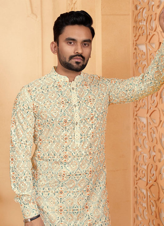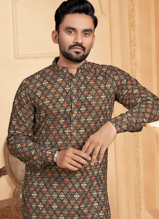 Kurta Pyjama Soft Cotton Blue Embroidered