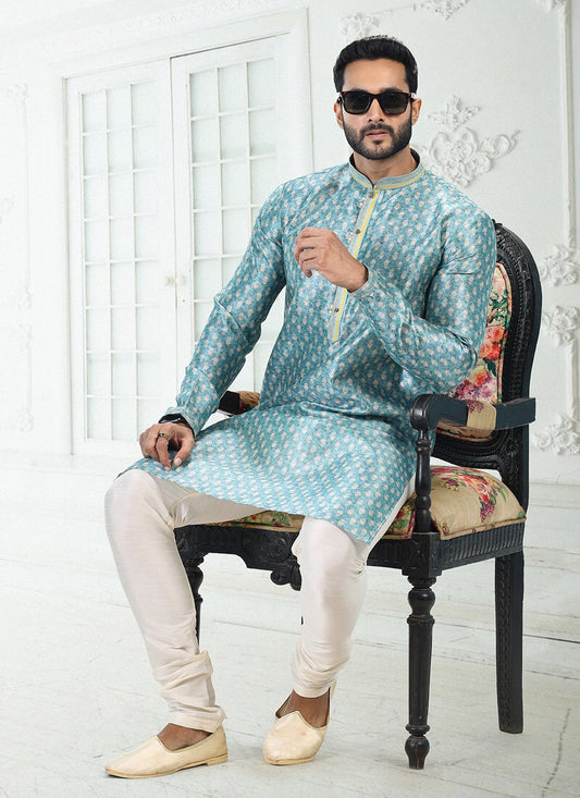 Kurta Pyjama Banarasi Silk Blue Digital