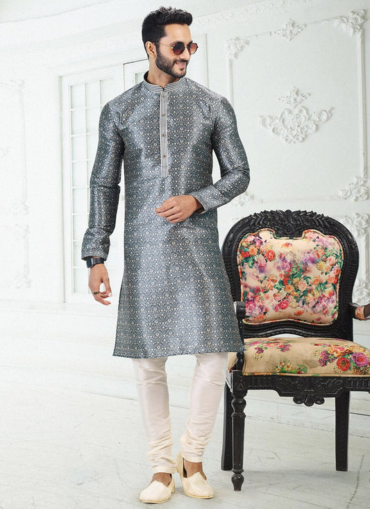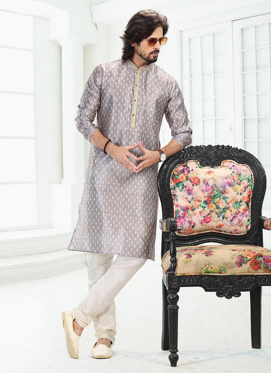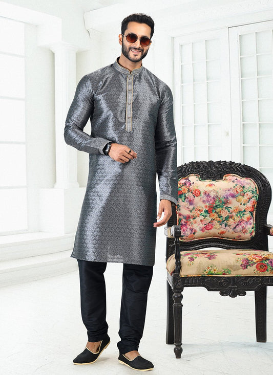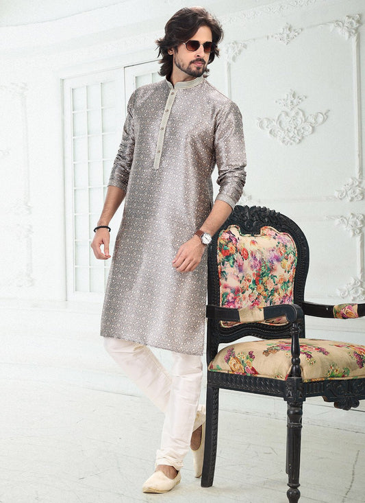 Kurta Pyjama Banarasi Silk Grey Digital