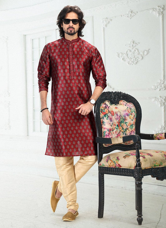 Kurta Pyjama Banarasi Silk Maroon Digital