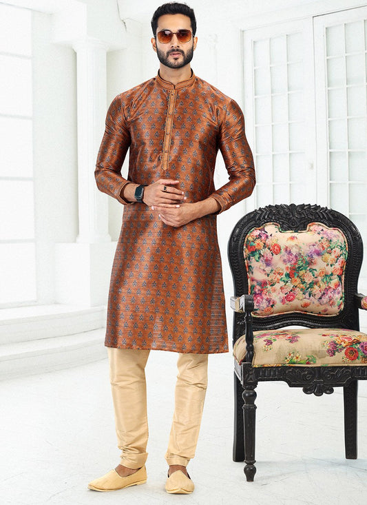 Kurta Pyjama Banarasi Silk Brown Digital