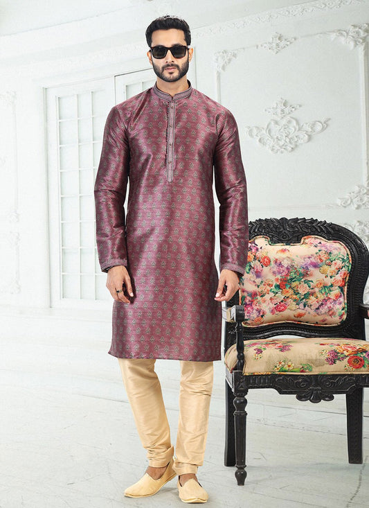 Kurta Pyjama Banarasi Silk Magenta Digital
